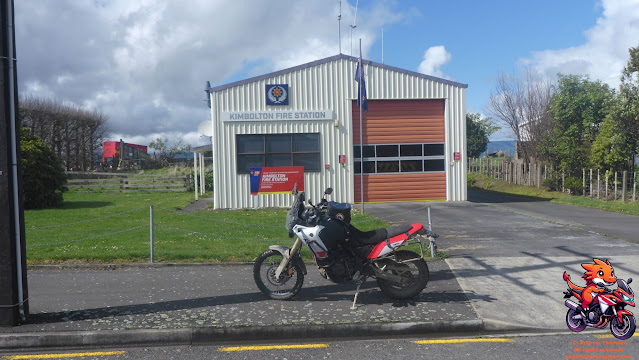 Thinking I had plenty of time (with them having 20+ km of Ridge Road to ride to get to Apiti, I meandered off up the road and grabbed a snap of the Kimbolton Fire Station for the AdvRider page before trundling off to Apiti to get that one as well.